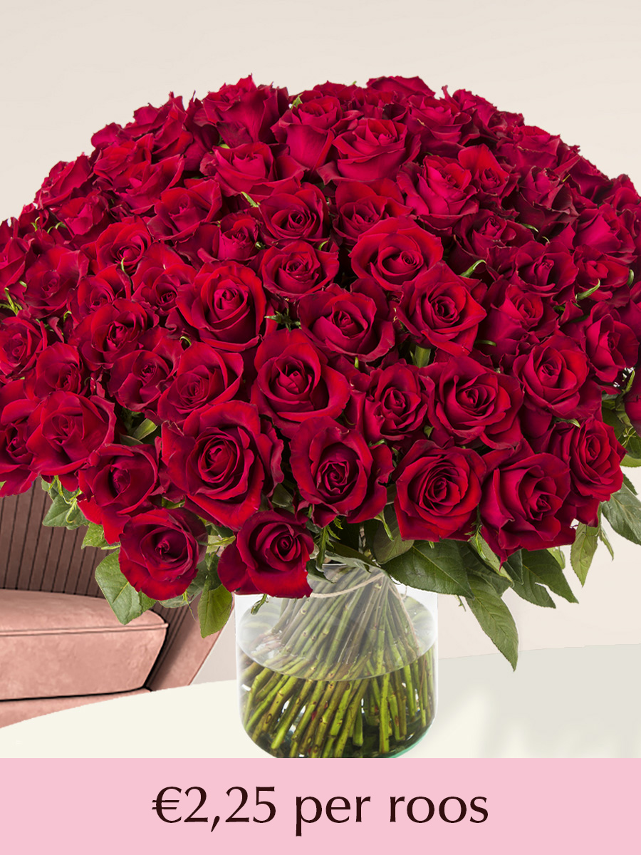 Je kunt ook de rozen per stuk laten verpakken door onze bloembindsters. Wil je bijvoorbeeld de rozen gaan uitdelen en weggeven per stuk? Wij kunnen elke roos voorzien van een waterflesje en een folie. Op deze manier kun je de rozen per stuk weggeven, krijgen de rozen water en zullen ze niet beschadigen. De handelingen hiervoor zijn gelijk aan het toevoegen van een witte roos. Bestel het aantal rode rozen dat je zou willen hebben. In je winkelmand scroll je naar beneden. Onder “Meer keuzes” zul je het product “Per stuk verpakken” tegenkomen. Het aantal rozen dat je per stuk wil laten verpakken kun je hier invullen en ook bestellen. Rond vervolgens je bestelling verder af zoals je gewend bent. Wij zorgen dan voor de rest! Heb je toch nog vragen? Neem dan vooral even contact met ons op.
