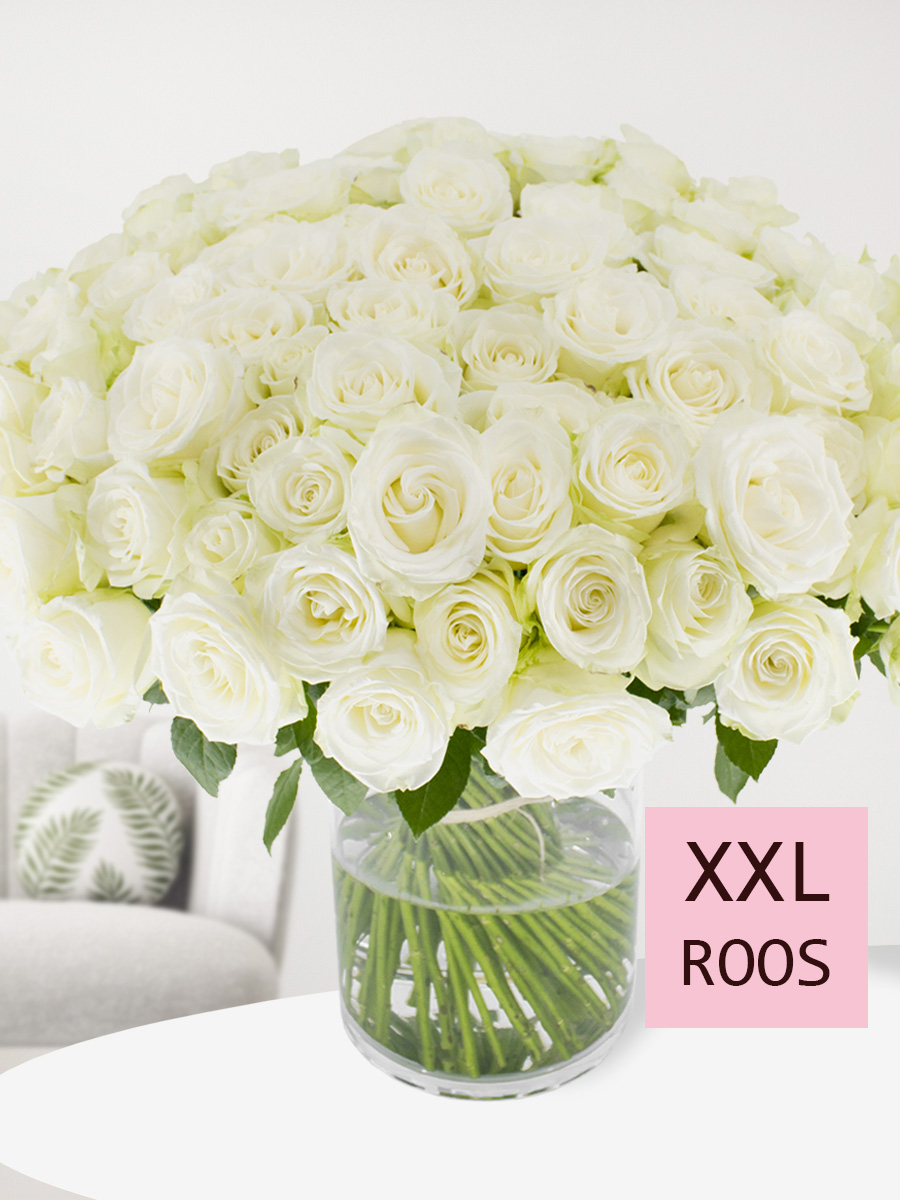 Witte rozen staan voor loyaliteit, puurheid en onschuld. Witte rozen zijn daardoor perfect om te geven als je iemand bijvoorbeeld wilt bedanken voor de vriendschap die jullie hebben. Om echt indruk te maken ga je natuurlijk voor een boeket van 100 rozen. Een groter gebaar dan dat kan toch niet?