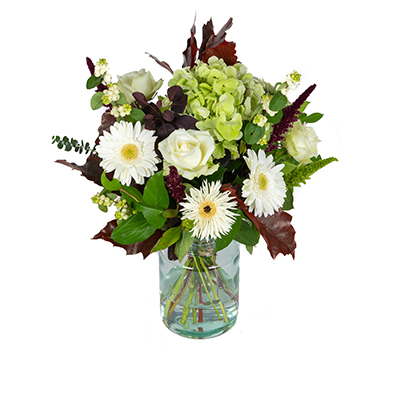 Mooie contrast kleuren fleuren dit boeket. Zakelijk, maar ook sprekend. Voor iedere gelegenheid geschikt.