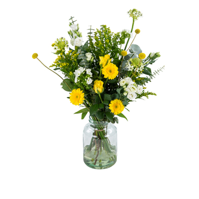 Een prachtig plukboeket in gele tinten. Leuk om te geven maar zeker zo leuk om te krijgen.