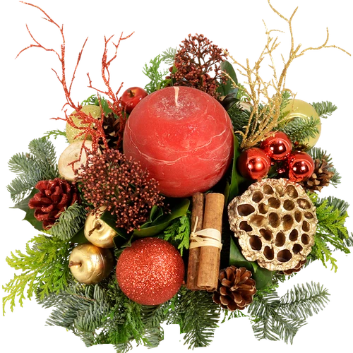 Zoek je een kerststuk ? Dan moet je hier zijn. Dit prachtige rood gouden kerststuk met bolkaars daar kun je iedereen blij mee maken. 7 dagen per week bezorgen.