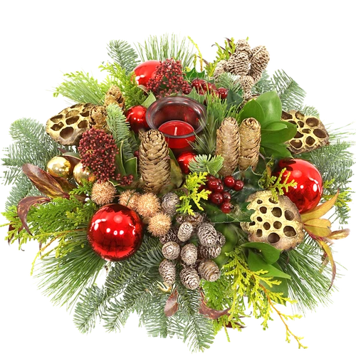Kerststuk waxinelichtje ca. 35cm Rood – Goud