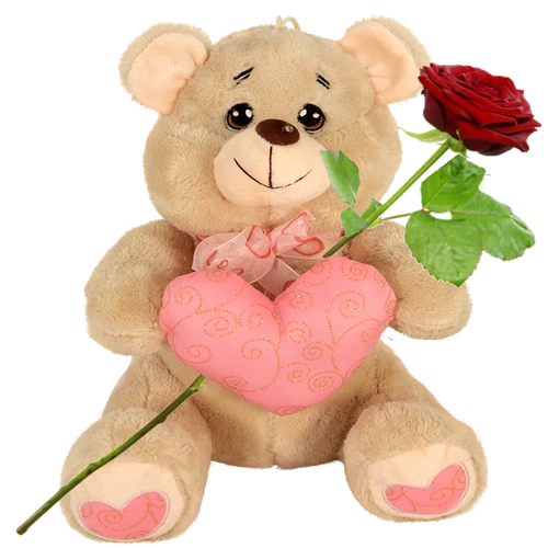 Knuffel roze hart ca. 30 cm + verse rode roos