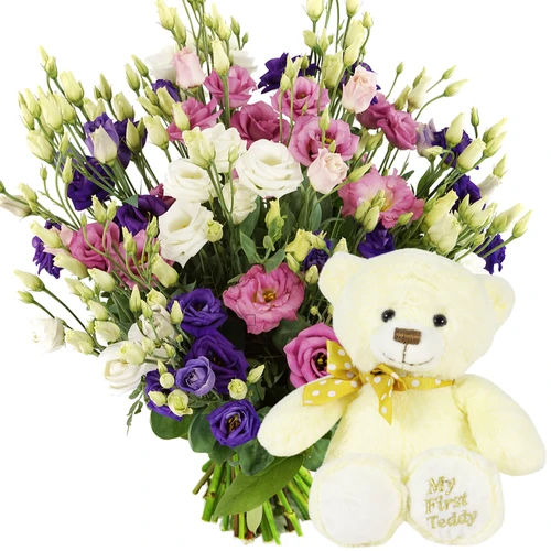 Net zwanger bloemen & knuffel bestellen? Originele kraamcadeaus voor moeder en baby. Een unieke knuffel My first Teddy.