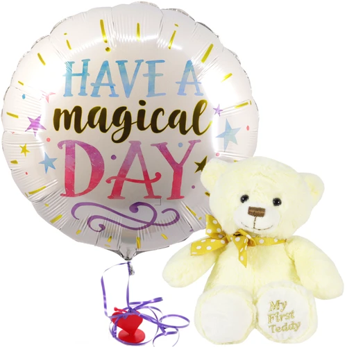 Kraamcadeau voor moeder & baby? Kies dan voor dit leuke 3 maanden zwanger cadeau met knuffelbeer en heliumballon.