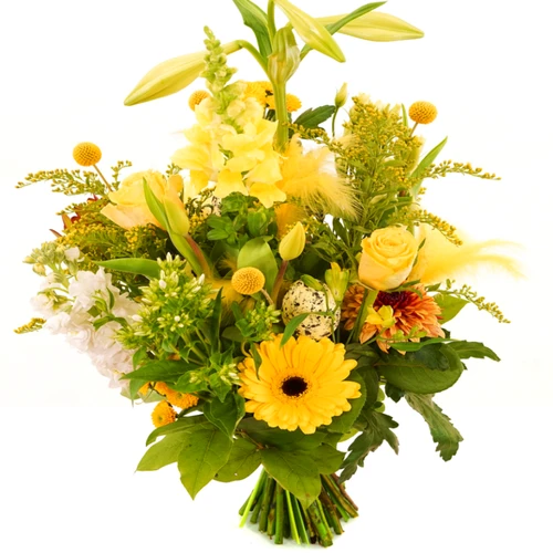Bloemen voor Pasen een plukboeket in het geel wit bestel nu en laat deze bezorgen voor Pasen.