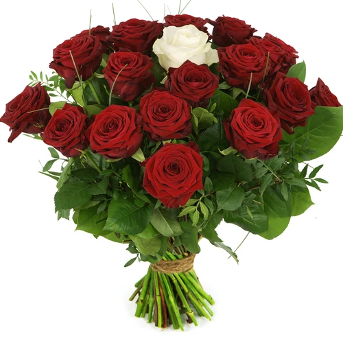 Rode rozen + één witte roos Bepaal zelf het aantal…
