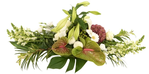 Wit begrafenis bloemstuk modern vormgegeven. Rouwbloemen bezorgen wanneer u dat wilt in heel Nederland. Thuiswinkel Lid. Bestel nu veilig online.
