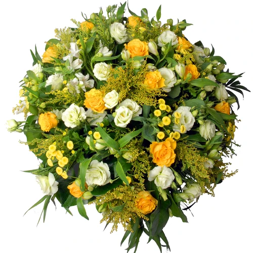 Rouwstuk online bestellen in de kleuren geel – wit.