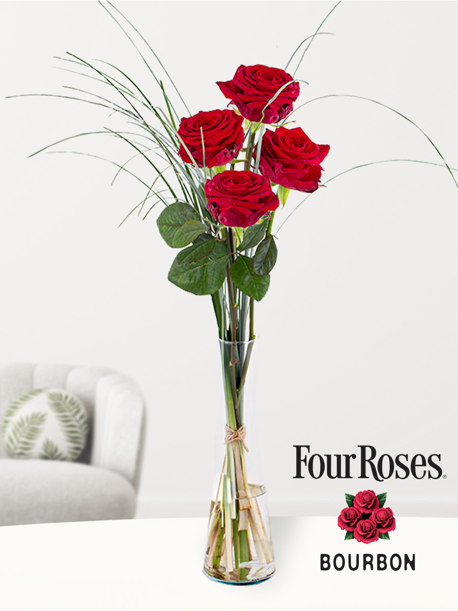 Je kunt hier eenvoudig rozen bestellen en versturen wanneer jij dat wilt. Het zijn 4 rode rozen van de rozensoort Red Naomi die worden gebonden met beregras door onze bloembindsters. Je krijgt van ons gratis het vaasje er nog bij! Je kunt zo een compleet geschenk versturen, waar de ontvanger van de rozen enorm van kan gaan genieten. Bij de rozen krijg je ook verzorgingstips en rozenvoeding, zodat er zo lang als mogelijk genoten kan worden van de rozen! Vergeet niet om je persoonlijke wenskaartje in te vullen of te kiezen voor een videoboodschap, om de ontvanger te laten weten waarom hij/zij dit heeft verdient!