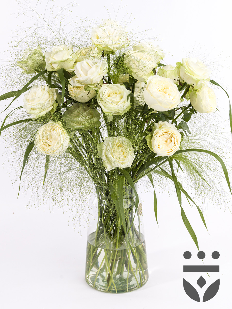 Je vindt het centerpiece onder de witte bruidscollectie. Deze valt onder de platinum collectie. In de platinum collectie zijn ook de kleuren pastel en pastel plus te vinden. Dus als je iets meer kleur wil op je bruiloft, maar wel graag exclusieve en botanische rozen, dan kunnen wij je zeker nog wel helpen aan het perfecte centerpiece (https://www.surprose.nl/bruidsboeket/centerpieces)! Van deze centerpiece hebben we ook nog een medium variant en sets van 6 vaasjes om te verspreiden over je tafel. Je kunt zelfs je bruidsboeket en de boeketjes van je bruidsmeisjes allemaal op elkaar afstemmen. Die boeketten hebben we namelijk ook allemaal van de witte botanische rozen die je hier ziet!