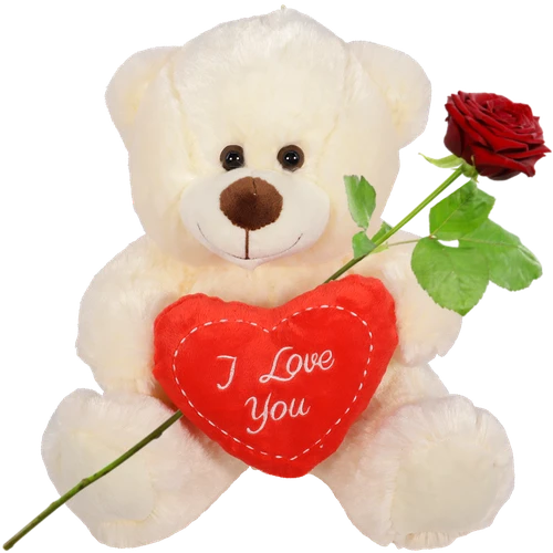 Witte pluche knuffelbeer met een rood hart in zijn hand met de tekst I love you er op. Verstuur de liefdes knuffel en verras jij iemand met de luxe pluche knuffelbeer ? Thuiswinkel lid. 24/7 bezorgen in heel NL