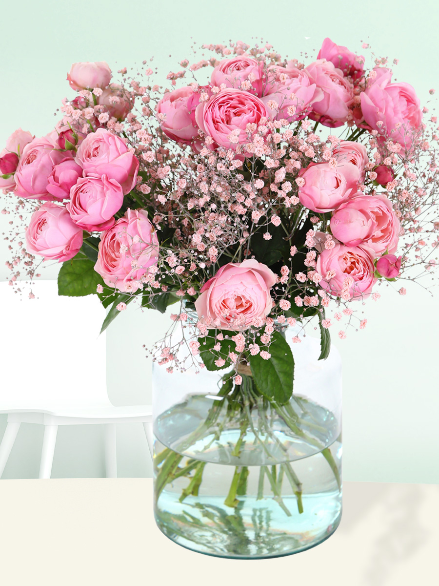 De trosrozen (https://www.surprose.nl/specials/trosrozen)in dit boeket zijn van de soort Silva Roses en worden door Dümmen Orange in Nederland gekweekt. Dit boeket wordt door onze bloemisten met de hand gebonden en bestaat uit 5 stelen trosrozen met meerdere rozenknoppen per steel en roze gipskruid. Dit alles wordt losjes bij elkaar gebonden in de juiste verhoudingen, wat zich uit in een bijzonder en groot boeket. De zachtroze kleur in dit boeket zorgt er voor dat dit trosrozen boeket voor iedere gelegenheid een prachtig geschenk is. Een zelfde soort boeket hebben wij ook in een boeket met hardroze trosrozen. () Benieuwd naar al onze trosrozen? Kijk dan even bij onze categorie ’trosrozen ()’ en laat je verrassen door ons ruime assortiment. Al onze boeketten worden in onze luxe verzendverpakking geleverd. Deze verpakking voorkomt dat de rozen beschadigen tijdens vervoer. Ook wordt er een freshbag aan de onderkant van de stelen toegevoegd om deze trosrozen tijdens vervoer vers te houden. In de verzenddoos wordt ook nog rozenvoeding en een gratis kaartje mee verpakt. Op dit kaartje kan een persoonlijke wenstekst geschreven worden in het daarvoor bestemde vak.